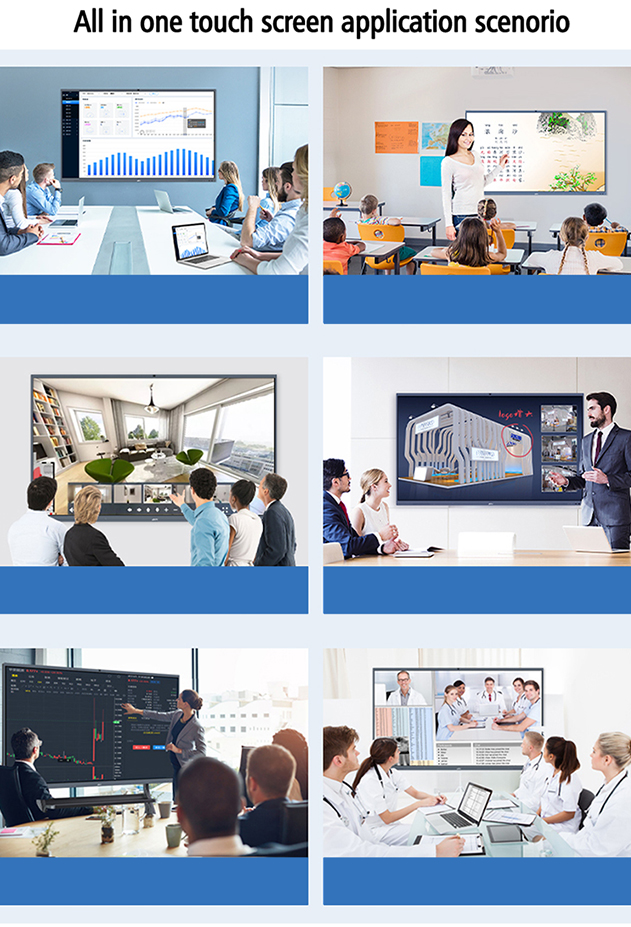 All-in-one conference machine is an all-in-one machine that integrates multiple functions of TV, computer, projector, electronic whiteboard, audio, and video conference terminal. It is an office equipment specially designed for meetings, also called smart conference all-in-one, The smart conference tablet is also called a teaching all-in-one machine in the education field. The smart conference all-in-one machine adopts an integrated appearance design, an ultra-thin body, and a simple business appearance; multiple USB and other interfaces are set on the side to meet the needs of multiple people in the meeting. The installation method is flexible and changeable, can be wall-mounted, can be matched with a mobile tripod, does not require strict installation conditions, and is perfectly adapted to various conference environments.The interactive conference machine uses an ultra high-definition LCD screen as the display and operation platform, with functions such as writing, annotation, synchronous interaction, multimedia, and remote video conferencing. It integrates high-definition display, human-computer interaction, multimedia information processing and network transmission and other technologies. Through a variety of innovative solutions based on this product that integrate the latest IT technology, it greatly improves people's communication efficiency in conferences, presentations, industry commands, deployments and other applications. It is the preferred solution for office, teaching, and graphic interactive presentations in the information age plan.